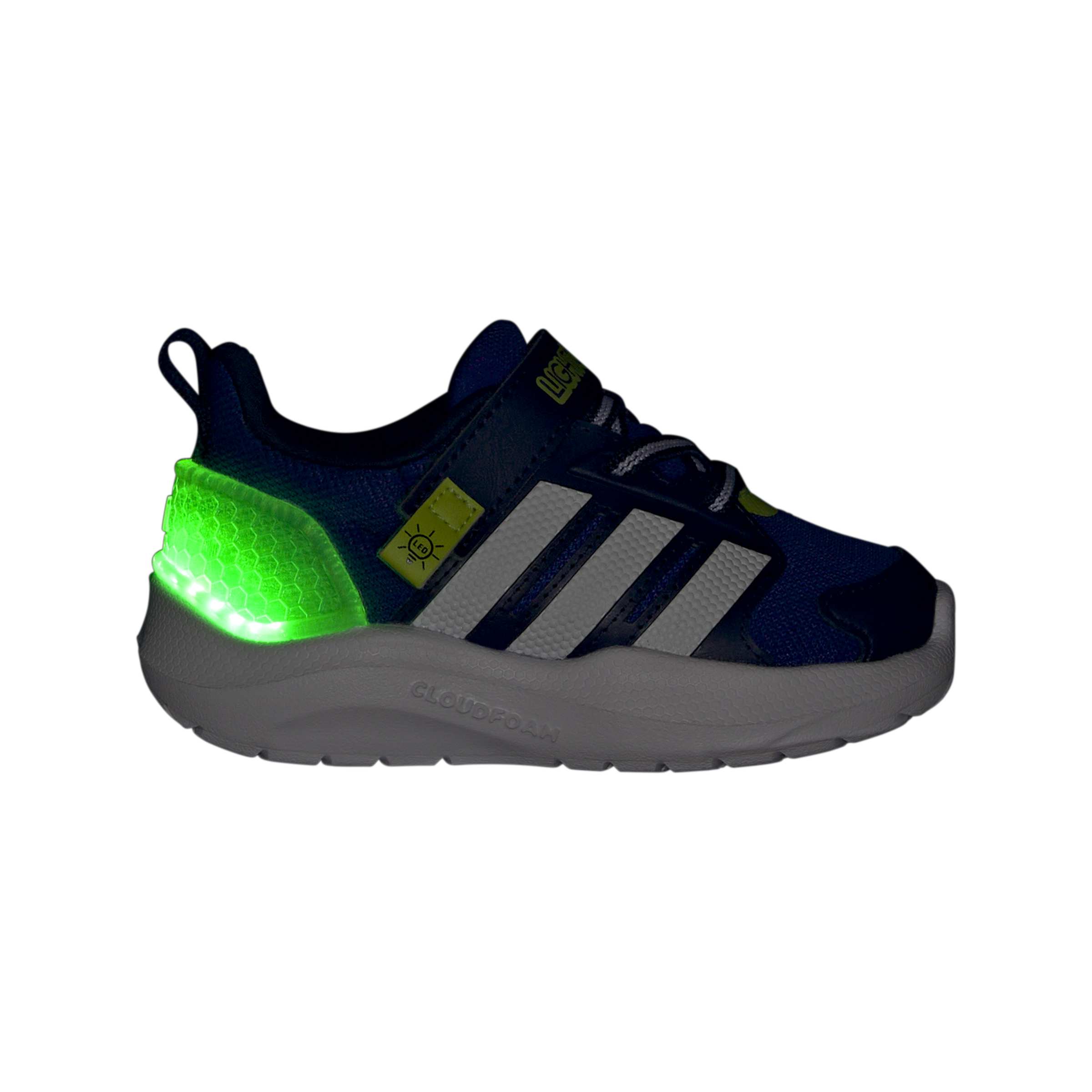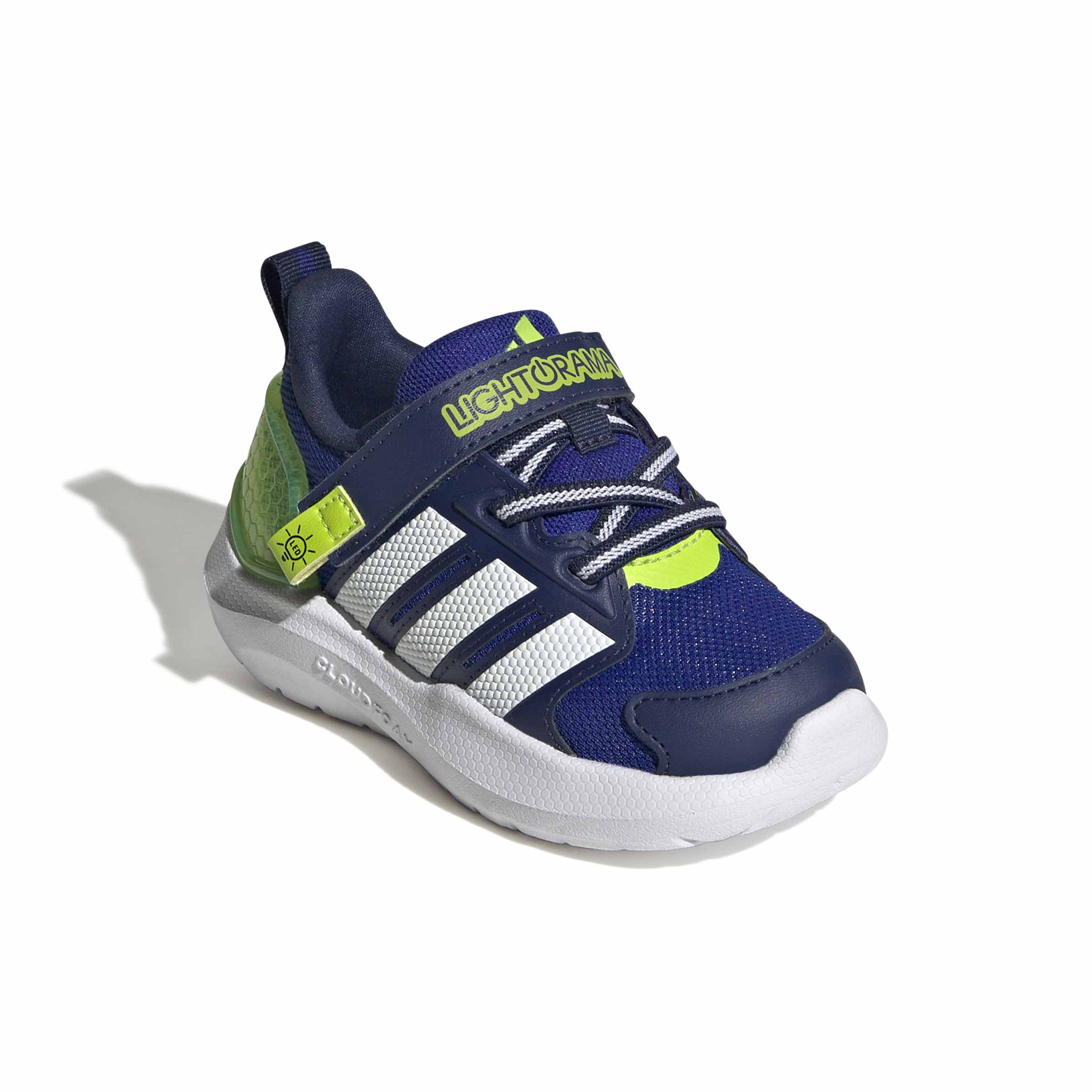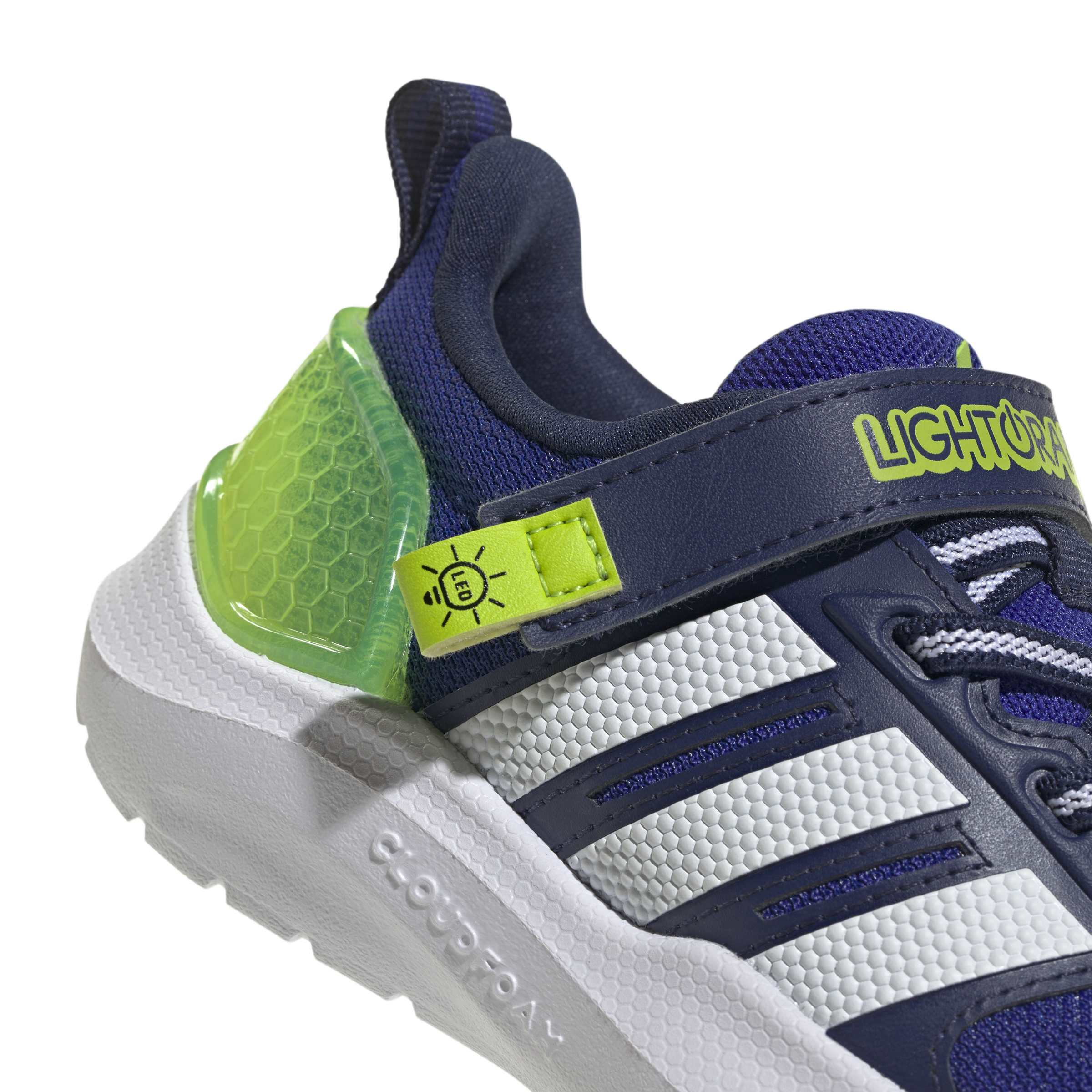 Light up your child's playtime with the Lightorama Shoes Infants, designed to keep up with the energy and curiosity of little ones. With a nod to classic adidas DNA, these shoes blend modern layering for lightweight comfort, making them perfect for kids' adventures. The easy-to-use elastic laces and hook-and-loop closure provide a snug fit, helping kids slip in and out with ease. The textile upper with synthetic overlays offers durability and breathability, helping to keep tiny feet comfortable throughout playtime. Cloudfoam technology in the midsole provides a holistic comfort experience, offering ultra-soft cushioning for those first steps. The non-marking outsole adds grip and stability, making these shoes great for indoor and outdoor play.