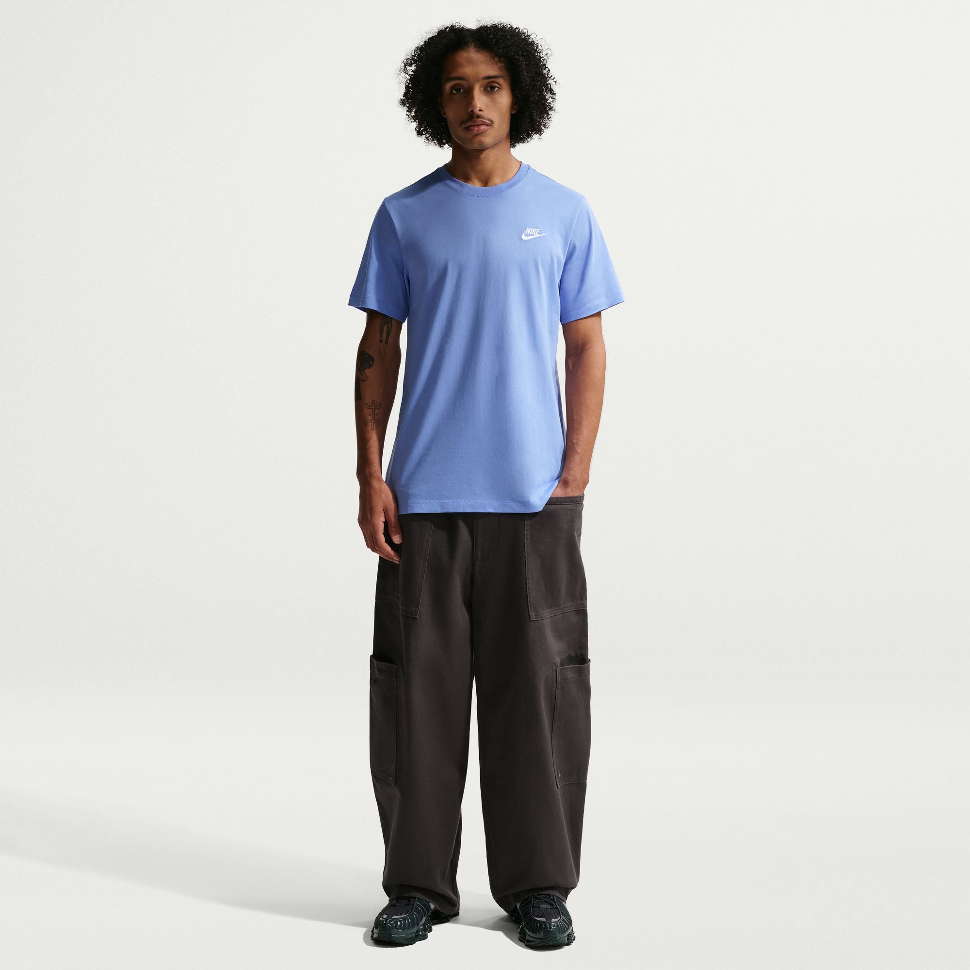 The Nike Sportswear Club T-Shirt is made with our everyday cotton fabric and a classic fit for a familiar feel right out of the bag. An embroidered Futura logo on the chest provides a signature Nike look.
