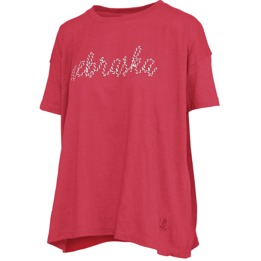 Celebrate your Huskers pride in comfort and style with this oversized women's tee. Featuring an adorable script front detail, this relaxed-fit shirt offers the perfect blend of casual charm and team spirit. The generous cut provides an effortless, laid-back look that's ideal for game days, everyday wear, or showing your Nebraska love in the most fashionable way. Soft and versatile, it pairs easily with your favorite jeans or athleisure pieces.